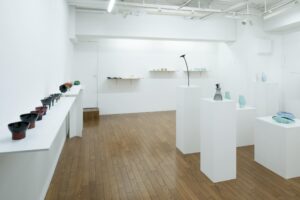 伝統技術をふまえつつ現代的な表現を追及する硝子・陶・漆の工芸作家三人展です。