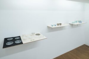 渡英してから暫くは、陶磁器のインスタレーションという形で作品を発表し続け、この時に鋳込み技術を習得しました。同じ頃、結晶釉と出会いそこからライフワークとなる研究が始まります。私は釉薬の調合に亜鉛を使用しているため、亜鉛華結晶釉と呼んでいます。