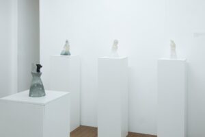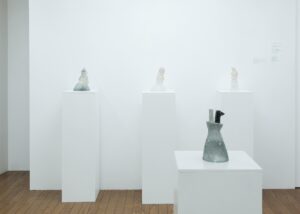 石田菜々子は2012年東京藝術大学大学院を終了、大学で鋳金、大学院でガラスを専攻しました。2012年の卒業制作は取手市長賞を受賞し取手市所蔵となっています。おもにキルンキャスティングによる少女や動物をモチーフにしたガラス造形を制作。目を閉じ微笑む少女の表情やユーモラスな動物達とガラスの質感があいまって柔らかい空間を作り出します。吹きガラスやパート・ド・ヴェール等による器も展示致します。