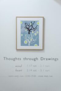 私は日々の生活の出来事で心に印象深く残ってくるものをテーマにして描いています。ドローイングを描く時は自分にとって気持ち良い感じはどんな風か?を大切にしているので新たな発見や再認識が沢山あります。