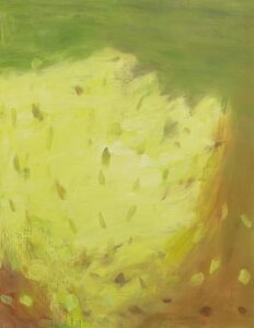 最近2年程、鉱物をモチーフ(動機)にして絵を描いています。例えば図鑑で虹色が美しいオパールの写真を見つけてそれを出発点にした場合、層をなす複雑な色の混ざり具合や色斑の意外な配置、半透明の質感に惹かれますが、そのまま再現するのではなく、それらをヒントにして自分の色彩に置き換え、自分本来のリズムに従って描きます。こうして一つのオパールから大小数点の絵が生まれます。