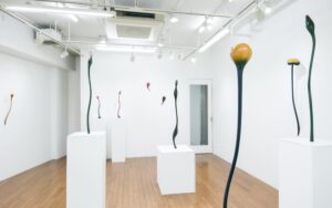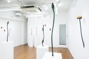 伸びやかさやスピード感のある有機的なフォルム、手間をかけ磨き仕上げられたなめらかな手触りや深い艶、鮮やかな色漆も魅力です。芽吹き成長する草木をイメージしたオブジェをメインに空間を構成、器も展示致します。ぜひご高覧下さい。