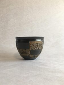 土という柔らかい素材を窯で高温で焼き締めることで強度を持ったカタチを造形する陶芸に興味を持ち、作陶の可能性を日々探求しています。現在は黒土に皹割れる金色の釉薬を施した器を制作しています。酒の肴になるような味わいのある作品を目指しました。御高覧頂けたら幸いです。