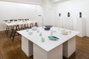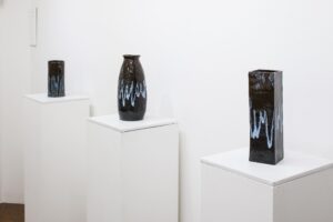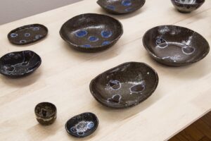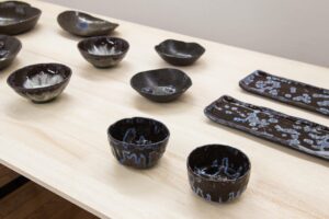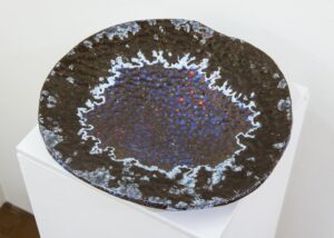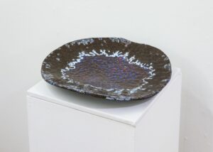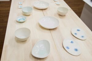 釉薬と焼成の研究を経て、磁土に雪や海を思わせる白やブルーの釉薬による大輪の結晶作品のほか、陶土、黒土の素朴で温かみのある作品にも結晶釉を展開。光や液体によって変化する結晶模様は実用にもオブジェとして飾っても楽しめ、生活を彩ります。2019年までの皿、花器、鉢等約70点を展示致します。