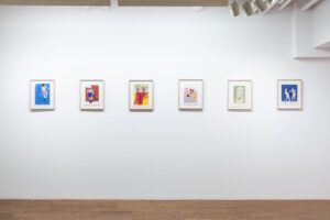 紙を折り、折った部分を面で塗り、面を見ながら模様を描く。 絵と模様、印刷物の裏表、折り紙と茶室の下地窓、構造と装飾。 和歌の中で言葉が言葉を呼び、そしてお互いが複雑に関連して成立するように、そして、もうひとつの可能性を消さないようにと考えながら、紙のドローイングと向き合いました。