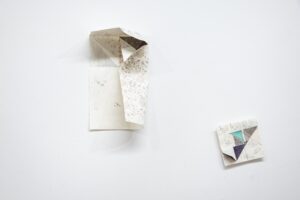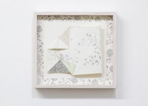 大城夏紀 “ 庭、雪、花 ”(部分) h9.2×w10.8×d3cm 鉛筆、グラファイト、色鉛筆、糸、顔料プリント、紙 2021年