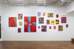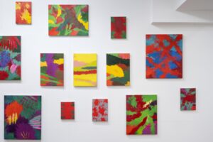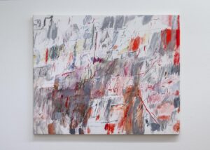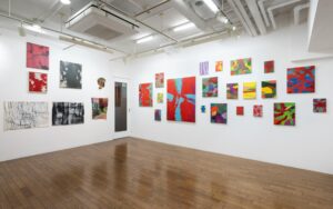 私の場合は、外の世界のことと絵を描くことの繋がりが見いだせなかったので、絵の中のことを取り上げて制作をすることにした。具体的には絵に否応なく生じてくる地と図の領域に目を向けて、それらが絶えず入れ替わるというような過程を繰り返しながら、最終的に地と図が固定化されない状態というものを目指した。しかし、実際にはどこかの地点で着地をするしかないので、今回展示した30年近く前の作品は、随分と落ち着いたものに見える。時間が経っているということもあるかも知れないが、色彩が限定的(赤と白など)であったことが一番の理由だろう。
