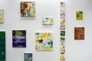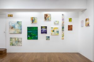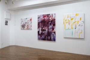再び色彩が画面に戻ると、色面が覆う作品と塗られていないところが多い作品では、自ずと意識が変わります。そこにかたちを定着させることが制作における目下の課題です。
