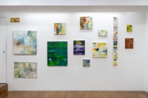 現在は、この地と図という二項に回収されない第三、四…といえるような項目を色彩に置き換えて画面に向かっている。混乱することも度々であるが、多様であることを思いながらの制作である。