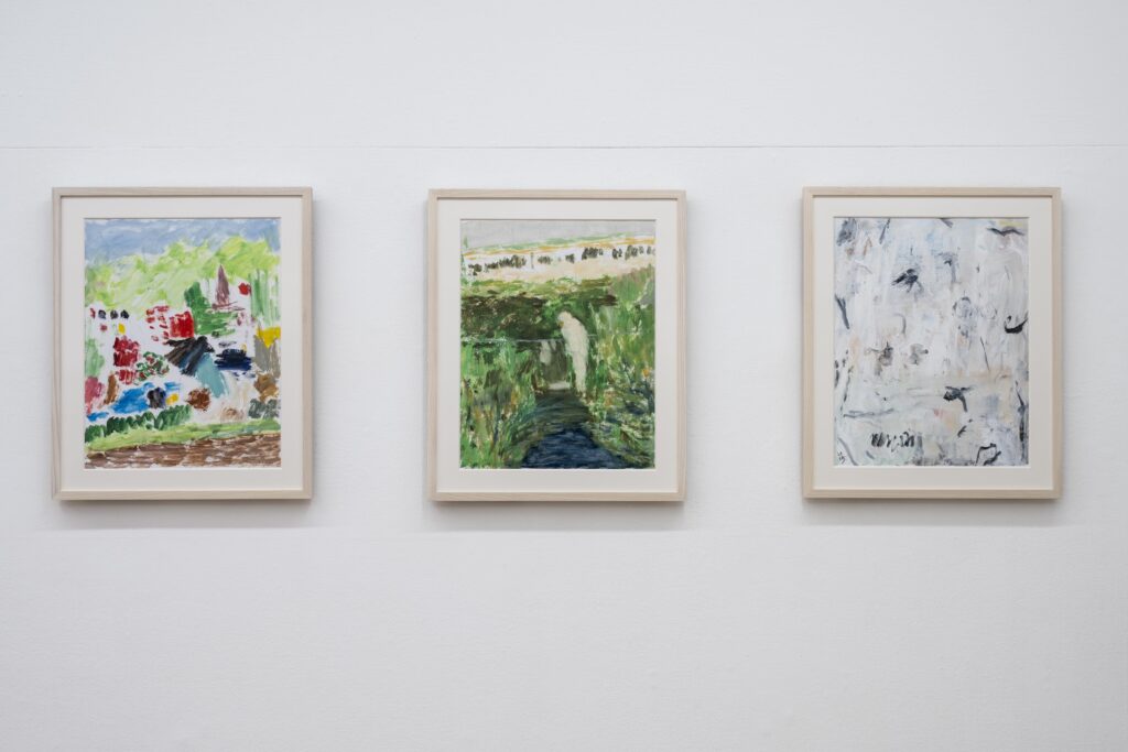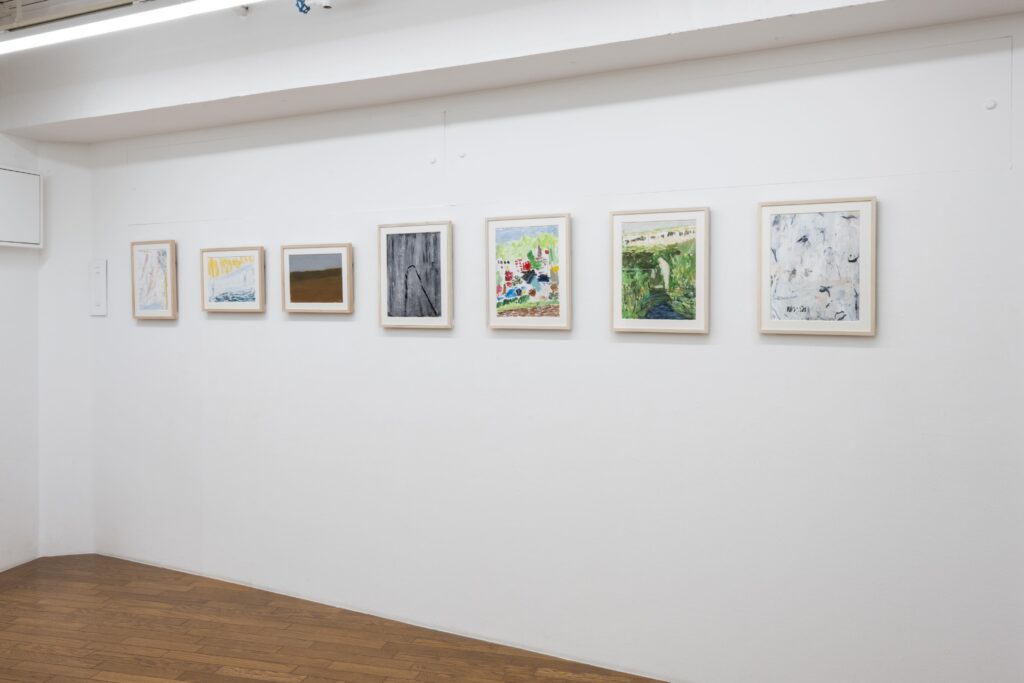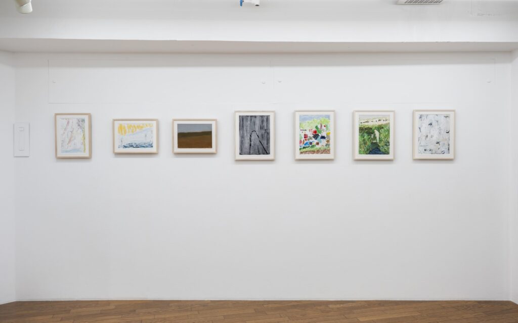 油彩作品とは別に紙による水彩の仕事をするようになったのはこの2年から3年の事である。特性の異なるメディウムに対する興味に加えて、はっきりとしたイメージになる以前のもの、明確さと曖昧さとの間の振幅の差のようなものを感じられたならと思ってのことだった。油彩と水彩では向き合う時間の質も異なっていて、私にとってそれはタブローの方向を向いていない絵画、タブロー制作の傍らに置いてきてしまったものだった。アンフォルムから投げ出されたフォルム、、イメージにすらならなかったヴィジョンの回復とでも言ったら良いのだろうか。そうして未完の想いは更に未完のまま紙の上に表出する。