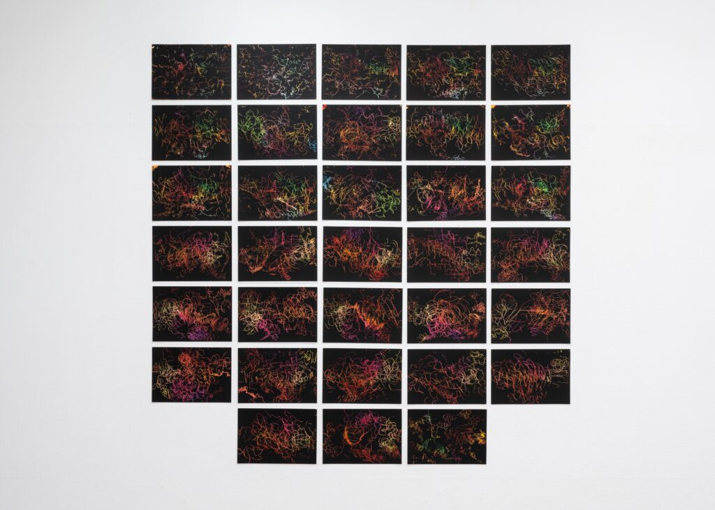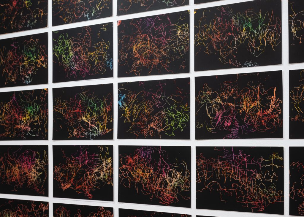 描く毎に描いた作品を忘れて、それでもなお描き続けることが描き手の理想であるとするなら、反故にした紙片も含めたこの数多の眼前の記録から遁走しようとすることもまた描き手の命運と言えるのかもしれない。